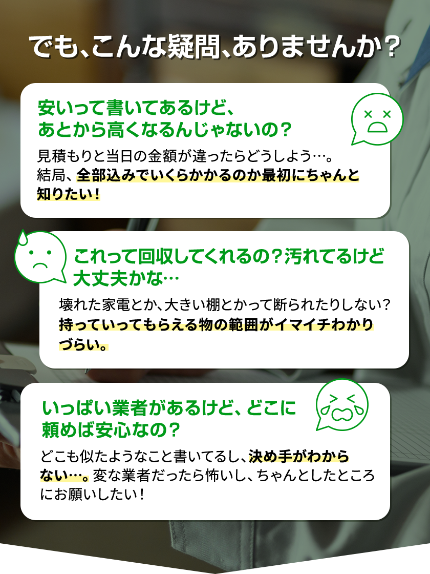 基本料金・車両代・出張費はすべて無料!業界最安値で不用品をスピーディーに回収してくれる優良業者